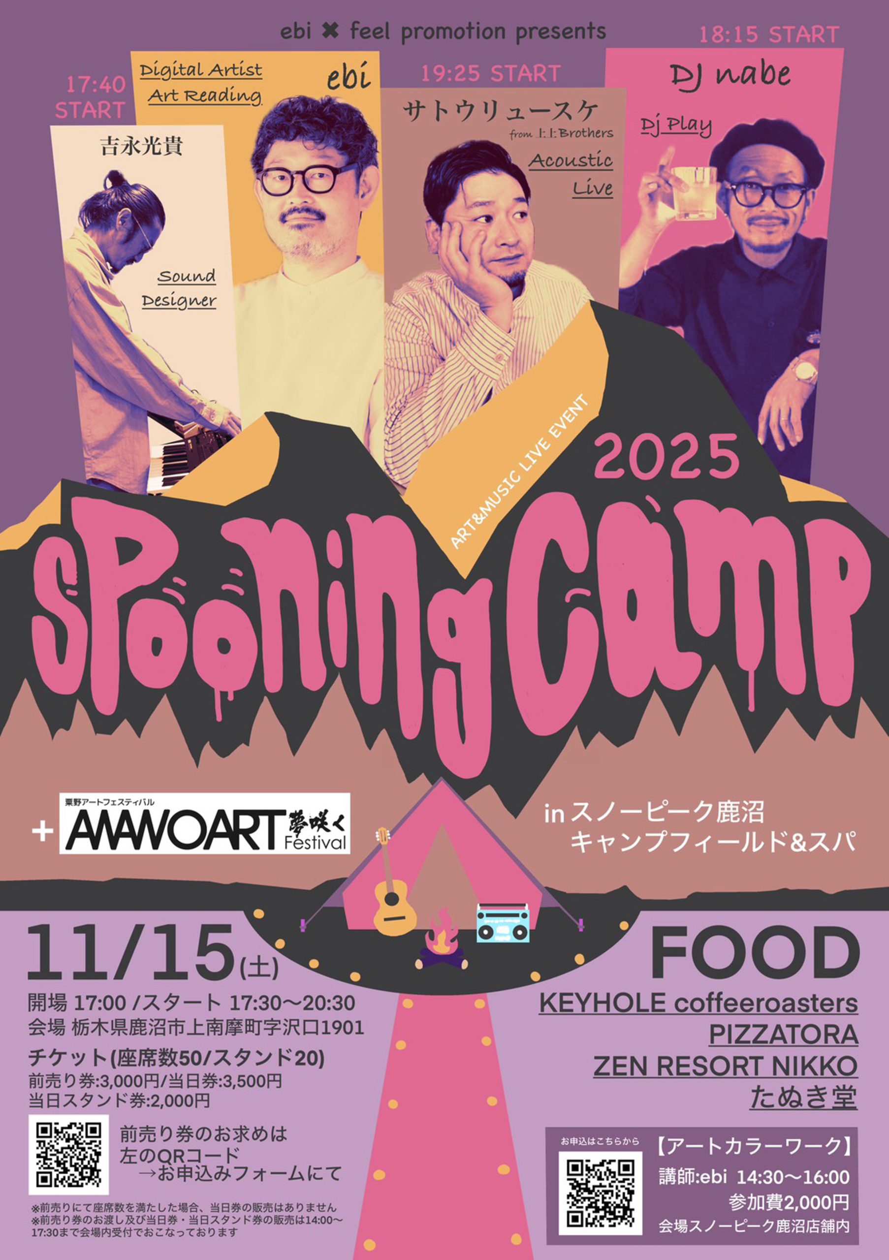 【主催イベント】Spooning Camp 2025 +AWANO ART FESTIVAL in スノーピーク鹿沼 キャンプフィールド &スパ